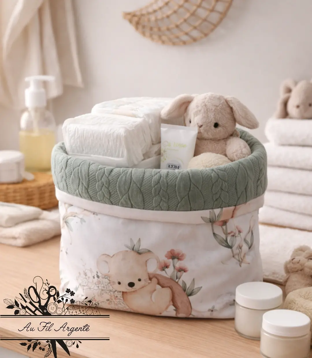 Petit Panier de Rangement - Koala et Torsades Vert jade