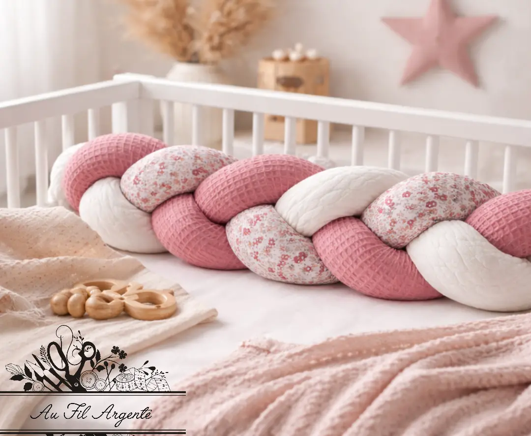 Une tresse de lit personnalisée, douce et sécurisée, fabriquée à la main en France pour accompagner les nuits de votre enfant en toute sérénité.